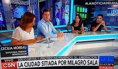 La diputada nacional bonaerense por el Frente Renovador, Cecilia Moreau participó de "La Noticia Del Día", el programa de Maria Belen Aramburu que se emite por C5N. En esta oportunidad la diputada se refirió al tema Milagro Sala y dijo: "La discusión que tenemos en Buenos Aires acerca de la situación procesal de Milagro Sala es algo que debe definir y responder el Poder Judicial de Jujuy, yo soy legisladora, y como tal, no intervengo en decisiones de otros poderes del Estado".