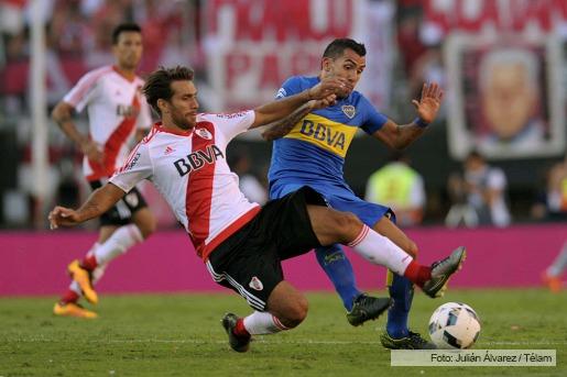 Con todos los condimentos que siempre existe en este tipo de enfrentamientos, el partido comenz贸 con un muy buen ritmo. Y en este contexto, dentro de un tr谩mite vertiginoso, los primeros 45 minutos fueron de plena superioridad del 'Millonario', que presion贸 en campo contrario (con Ponzio sobre Gago y los dos laterales -Mercado y Vangioni- como dos mediocampistas m谩s) y se adue帽贸 de la pelota, haci茅ndola circular con fluidez a trav茅s de Nacho Fern谩ndez, a quien pareci贸 no pesarle tener que jugar su primer Supercl谩sico de manera oficial.