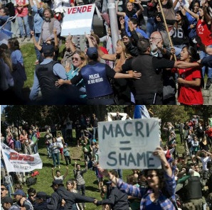 Entre los cánticos y expresiones, se escuchó "Patria sí, colonia no" y abucheos. También exhibían carteles con similares consignas y otros contra el presidente Mauricio Macri . En los incidentes no hubo detenidos ni daños.