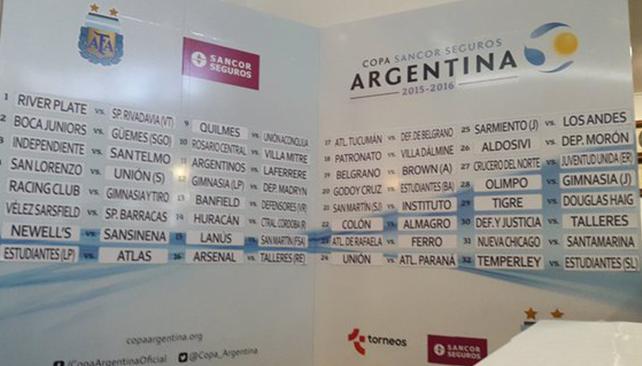 Los cruces de 32avos de final de la Copa Argentina 2016