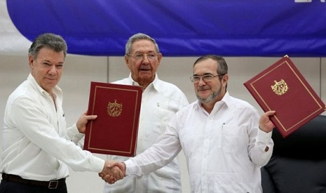 | El gobierno de Colombia y las FARC firmaron en Cuba histórico acuerdo de cese el fuego bilateral y definitivo | |||