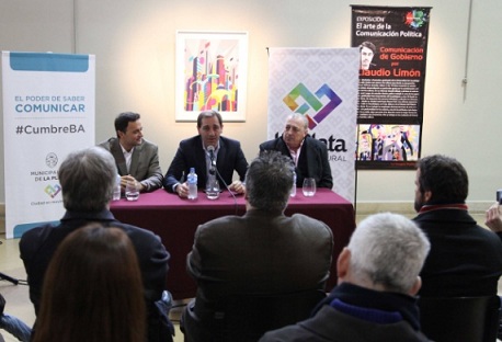 El intendente de La Plata, Julio Garro, y el diputado provincial y organizador de la Cumbre Mundial de Comunicaci贸n Pol铆tica, Daniel Ivoskus, inauguraron la muestra de "Arte y Comunicaci贸n" en el Museo Municipal de Arte (MUMART). "La Plata tiene que ser el polo cultural de la Provincia", se帽al贸 Garro.