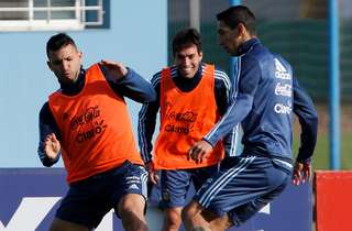 El "Kun", de gran presente en Manchester City, de Inglaterra, estuvo en el inicio de la práctica pero luego se trasladó a kinesiología para tratarse la molestia en el sóleo de la pierna izquierda, tal como explicó el entrenador en la conferencia de prensa posterior al empate frente a Perú dada la ausencia de un parte médico.