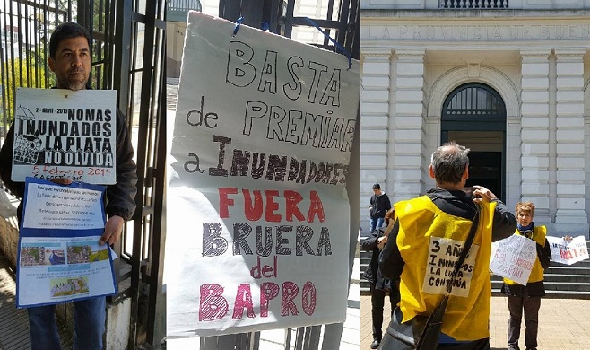 Con motivo de cumplirse 43 meses de la tr谩gica inundaci贸n del 2 y 3 de abril de 2013, este mi茅rcoles al mediod铆a, Asambleistas y Vecinos Autoconvocados marcharon por el centro platense y se dirigieron a la entra da del Banco provincia en calle 7 entre 46 y 47 y realizaron una protesta y escrache conta el ex intendente Pablo bruera por haber sido nombrado sindico de la empresa BA Desarrollo del grupo BAPRO que preside Jorge Macri.