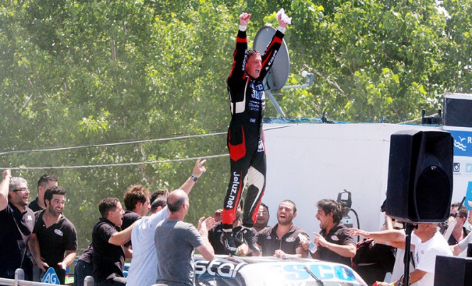 El Rey de Salto festeja arriba del techo del Chevrolet en el podio de La Plata.
