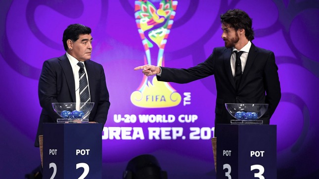 Asà lo determinó el sorteo realizado hoy en la ciudad de Suwon, en el cual participaron como invitados especiales Diego Armando Maradona, campeón mundial sub-20 en Japón 1979, y Pablo Aimar, campeón en Malasia 1997.