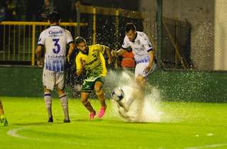 El primer tiempo tuvo como protagonista al local debido a que se par贸 firme en el fondo, se hizo due帽o del mediocampo y arm贸 jugadas colectivas que le permitieron llegar al arco defendido por el arquero Rodrigo Rey. Sin embargo, la gran cantidad de agua que cay贸 durante el encuentro y que malogr贸 el campo de juego, no le permiti贸 ser eficaz al momento de definir.