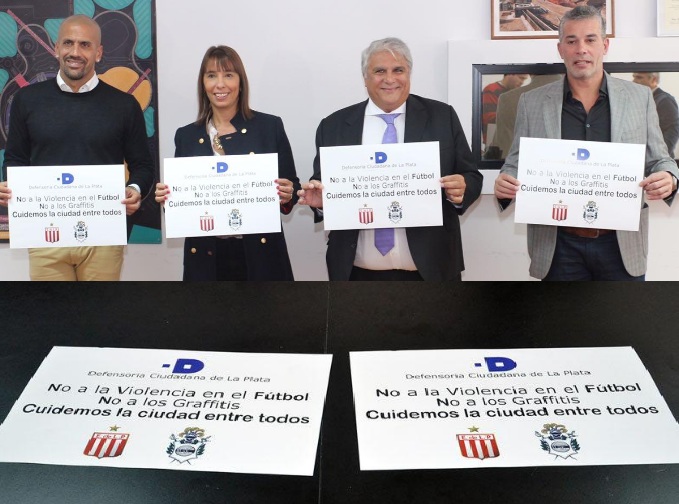 Bajo el lema "No a la Violencia en el Fútbol, No a los Graffitis, Cuidemos a la ciudad entre todos" los titulares de ambas instituciones, conjuntamente con Florencia Barcia, Defensora Ciudadana platense y su Defensor Adjunto, Tulio Marchetto; sellaron el acuerdo por el cual Estudiantes y Gimnasia se comprometen a llevar a cabo de manera conjunta acciones y proyectos para erradicar la violencia en los estadios de fútbol y en La Plata.