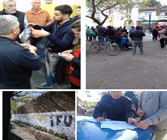 Más tarde el docente estableció una denuncia en la ComisarÃa 3° de Florencio Varela, contra los oficiales que lo increparon esta mañana en el establecimiento educativo y hubo movilización a la puerta de la ComisarÃa en apoyo del docente.