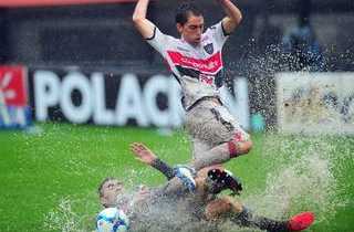La gran cantidad de charcos de agua en varios sectores del campo de juego se convirtieron en obstáculos y dieron varias sorpresas al propiciar errores de cálculo.