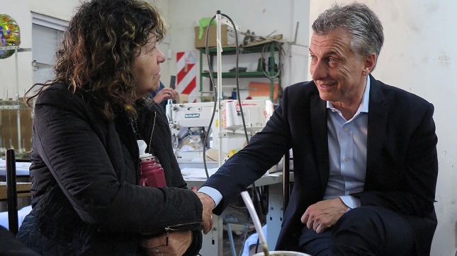 | Macri visit贸 una cooperativa textil en Berazategui | |||