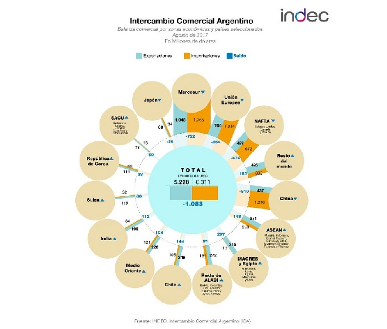 | Argentina: En Agosto "cayeron las exportaciones y el d茅ficit comercial es de u$s 1.083 M" | |||