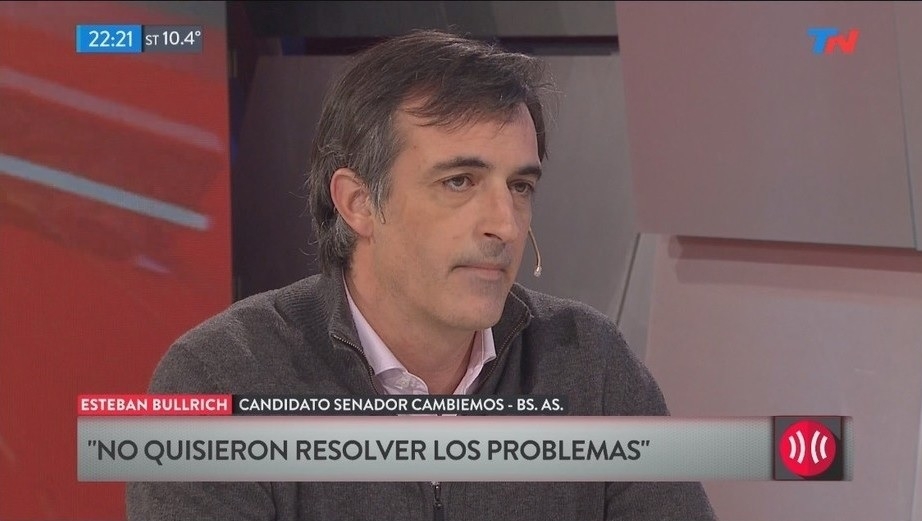 El candidato a senador nacional bonaerense por Cambiemos, Esteban Bullrich, se lamentó de que la ex presidenta y rival por Unidad Ciudadana, Cristina Kirchner, rechazara un debate público de propuestas para las elecciones del 22, al tiempo que se preguntó "por qué si ella luchaba tanto por los pobres mintió las cifras de pobreza durante años y hasta se burló en organismos internacionales". "Lamentablemente no tuvimos la oportunidad de debatir con la ex presidenta. Me hubiera gustado no por mí si no por el derecho de todos los bonaerenses a conocer el intercambio de propuestas de los candidatos. Si la hubiera tenido en frente lo primero que le hubiera preguntado es por qué si le preocupaban tanto los pobres como decía y dice, mintió las cifras de la pobreza. Dijo ante la ONU que teníamos un 6 por ciento de pobreza y estaba dejando el 30", aseguró Bullrich. El ex ministro de Educación recordó que Cristina "ocultó las cifras de pobreza como si fuera una viveza interna y con el agravante de que fue a un organismo internacional de la ONU (la FAO) a decir que teníamos un 6 por ciento de pobres y después funcionarios de su gabinete dijeron que estábamos mejor que Alemania sin ponerse colorados". "Para los que veíamos lo que estaba pasando en el país y lo que nos dejaban al irse, escucharla decir eso era doloroso. Por eso le preguntaría por qué hizo eso y se comportó así", sostuvo Bullrich, en declaraciones al programa "A dos voces". La emisión del tradicional programa político del canal de noticias del grupo Clarín estuvo dedicada al debate de candidatos, al cual fueron invitados los postulantes que encabezan las listas nacionales bonaerenses, sobresaliendo la ausencia de CFK; de hecho, el hashtag del canal en Twitter fue #CristinaSeBajó. En el programa, Bullrich dijo compartir "algunas visiones" con el candidato de 1País, Sergio Massa, pero "no el discurso del ajuste con el que insisten" tanto el tigrense como CFK, porque "eso es falso". "Es mentira que se viene el ajuste, es lo mismo que dijeron en las elecciones de 2015 diciendo que íbamos a cortar el presupuesto social y gobernar para los ricos. Y lo cierto es que 8 de cada 10 pesos del presupuesto nacional se destina al área social, es la mayor masa en la historia. No tienen argumentos, si siguen diciendo que representamos el ajuste subestiman a los bonaerenses", señaló el postulante oficialista. Por último, Bullrich rechazó las versiones respecto de que no asumiría la banca de senador para ir como embajador al exterior, por supuesto pedido del presidente Mauricio Macri. "De ninguna manera, no sé quién dijo eso realmente ni de dónde salió. Lo cierto es voy a asumir y representar los intereses de los bonaerenses en el Congreso y respaldar la gestión que está llevando la gobernadora (Vidal), luchando contra mafias de narcotraficantes, policías y una estructura política que les dio amparo", concluyó.