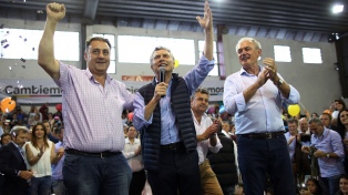 El presidente Mauricio Macri dijo que "hay una Argentina en movimiento, con m谩quinas por todos lados, que generan trabajo del bueno, y cuando se terminen esas obras, van a cambiar la realidad para siempre", durante un acto en la ciudad entrerriana de La Paz. "Todo cuesta, pero lo que cuesta se queda para siempre y lo que no se va r谩pido, y eso tenemos que valorar", se帽al贸 el presidente al encabezar un acto en el club Independiente de La Paz junto a candidatos de Cambiemos de esa provincia. Macri agradeci贸 "la energ铆a, las ganas y la calidez que tienen los entrerrianos" en su s茅ptima visita como presidente a Entre R铆os, y asegur贸 que pasaron "veinte meses trabajando juntos, claramente por el camino correcto". Macri dijo que "hay una Argentina en movimiento", y que ello "genera trabajo del bueno" "Los primeros que me lo dicen es en el Litoral", agreg贸, y detall贸 que el pasado domingo "Corrientes se levant贸 para decir s铆 se puede y apoy贸 a Cambiemos a que gobierne cuatro a帽os m谩s", en referencia al resultado final de la elecci贸n a gobernador en esa provincia, donde la coalici贸n ECO+Cambiemos obtuvo 54,06 por ciento de los votos, contra el 45,19 por ciento del frente "Corrientes Podemos M谩s". En Entre R铆os "escucho que dicen que quieren ser protagonistas y aportar para que Argentina se levante, crezca y est茅 llena de oportunidades para todos", enfatiz贸 Macri. |