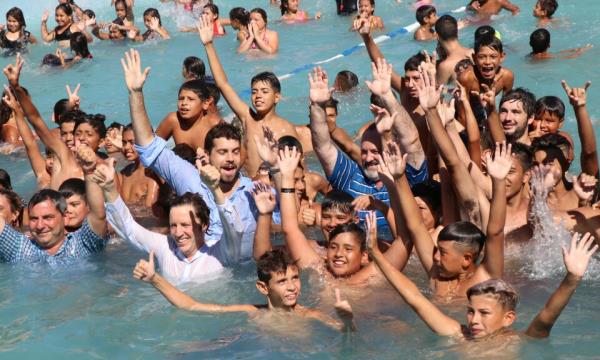 Acompañaron al jefe comunal el ministro de gobierno de la Provincia, JoaquÃn de la Torre, y el subsecretario de Asuntos Municipales del Ministerio del Interior Lucas Delfino, quienes terminaron en la pileta festejando con el intendente y los chicos.