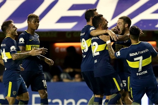 Los goles del conjunto que dirige Guillermo Barros Schelotto los marcaron Cristian Pav贸n (2m. PT) y el uruguayo Nahitan N谩ndez (19m. ST); mientras que en el equipo santafesino Gustavo Toledo (25m. ST) vio la tarjeta roja.