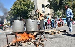 Los trabajadores cumplen este mi茅rcoles su noveno d铆a de acampe.(Lanoticia1)