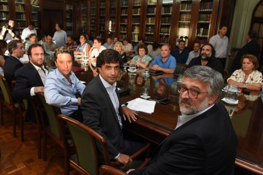 El Gobierno provincial convoc贸 a los gremios docentes a una nueva reuni贸n paritaria salarial para el mi茅rcoles 4 de abril, encuentro que se desarrollar谩 en la previa del paro anunciado por los sindicatos que conforman el Frente de Unidad Docente Bonaerense (FUDB) para el 5 de abril junto a otros gremios estatales. La reuni贸n, prevista para las 14 en la sede del Ministerio de Econom铆a, ser谩 la sexta para discutir salarios que se da entre el Gobierno y los representantes sindicales. En la 煤ltima reuni贸n, la Provincia ofreci贸 un 15% en tres cuotas y mantuvo la inclusi贸n de la cl谩usula de revisi贸n, que implica volver a sentarse a negociar en octubre caso de que la inflaci贸n supere ese porcentaje, as铆 como tambi茅n el pago de hasta 6 mil pesos anuales por presentismo, e incluy贸 como novedad un monto por capacitaci贸n de 3 mil pesos al a帽o. La propuesta fue rechazada de plano por los gremios, quienes hoy emplazaron una carpa blanca, s铆mbolo de las luchas del sector, junto a los estatales de ATE, los m茅dicos de Cicop y la Asociaci贸n Judicial Bonaerense (AJB). (DIB) |