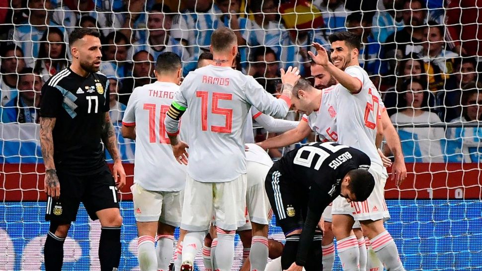 Espa帽a filtra a las defensas a puro toque. Dej贸 al desnudo la inexperiencia de Bustos y la falta de entrenamientos de la dupla Otamendi-Rojo. Tampoco pudo contener los avances Tagliafico por izquierda. Y no cubrieron los espacios hacia atr谩s ni Biglia ni Mascherano.