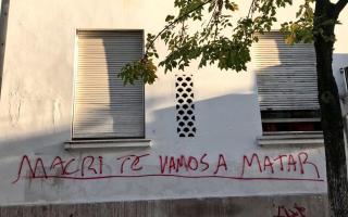 "Macri te vamos a matar" reza una pintada realizada con aerosol rojo en la fachada del edificio donde asisten los concejales de los distintos espacios pol铆ticos del municipio de Mor贸n.