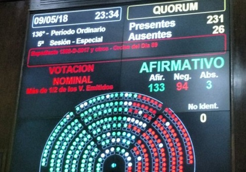 10-05-2018 | 133 votos afirmativos, 94 negativos y tres abstenciones