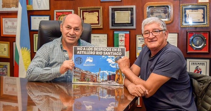 Tras la reuni贸n que mantuvo con el titular de ATE Ensenada, Francisco Banegas, el jefe comunal Mario Secco expres贸 "el plan liberal de Cambiemos quiere arremeter contra el Astillero y sus trabajadores. Por eso hoy, como siempre, me pongo al frente y defiendo las fuentes laborales, la industria nacional y un Astillero 100% estatal". "Esta consigna nos tiene que volver a unir a todos los ensenadenses. Una ciudad industrial como la nuestra no tiene que recibir ning煤n golpe de los gobiernos de Macri y Vidal", culmin贸 el alcalde de Ensenada. |