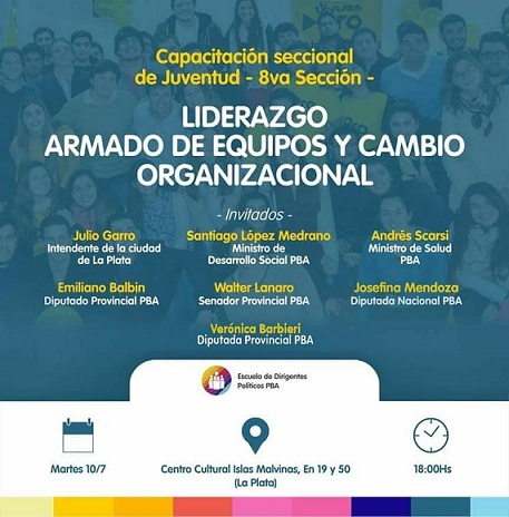 El encuentro, que se desarrollará desde las 18 horas en el Centro Cultural Islas Malvinas ubicado en Avenida 19 y 51 de La Plata, es organizado desde la Escuela de Dirigentes PolÃticos de Cambiemos en la provincia de Buenos Aires.