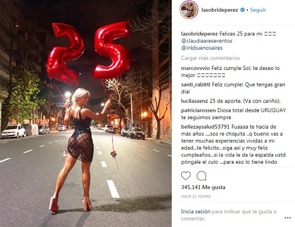 | Sol Pérez festejó su cumpleaños con vestido transparente y dijo: "Veinticinco no son nada" | |||