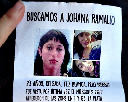 El 27 de julio de 2017 Marta Adelina Ramallo denunci贸 que el d铆a anterior su hija, Johana Ramallo, de 23 a帽os de edad, no hab铆a regresado a su casa. La presentaci贸n fue realizada ante la comisar铆a 16ta de La Plata, lo que motiv贸 el inicio de una investigaci贸n en el 谩mbito de la justicia provincial.