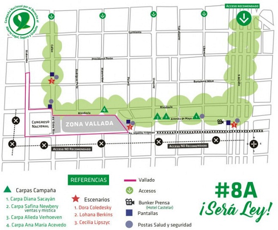 *La sesión especial comenzará a las 9:30hs *Lo primero que se tratará es qué dictamen se votará en el recinto *Una vez resuelto el dictamen, el proyecto de IVE comenzará a tratarse en el recinto. *Según los cálculos de la Campaña, la votación será entre las 2 y las 4 de la madrugada del jueves 9. *La Campaña instalará tres carpas y tres escenarios: -ACTIVIDADES EN LAS CARPAS: Carpa Diana Sacayán (Av. de Mayo y Santiago del Estero) 13hs - Diversidad sexual y lucha por derecho al aborto 14hs - Conversatorio sobre el supuesto SÃndrome posaborto 15hs - Luchas y resistencias legales desde las provincias 16hs - ¿Cómo se practica un aborto seguro? (por Red de Profesionales de la Salud por el Derecho a Decidir) 17hs - Lxs docentes les damos clase a lxs senadores 18hs - "América Latina en lucha por la legalización y la despenalización del derecho a aborto: contexto, organizaciones, estrategia" 19hs - Unidad feminista y transversalidad polÃtica para el reconocimiento de la autonomÃa, la libertad y el derecho a deciri sobre nuestros cuerpos 20hs - Historia de las luchas por el derecho al aborto y en particular de la Campaña desde 2005 21hs - Los derechos de las humanas: nuestro cuerpo, nuestro territorio 22hs - Salir de la clandestinidad. Cuerpos, afectos y activismo en las luchas por el derecho al aborto Carpa Alieda Verhoeven (Av. de Mayo y San José) 13hs - Abortamos la neutralidad. Trabajadoras de prensa por el derecho al aborto 14hs - Derechos, responsabilidad docentes y estudiantes secundaries 15hs - Sobre las redacciones del Proyecto IVE de la Campaña y de su reformuñación 16hs - Las pibas de 2000. La Campaña como construcción federal 17hs - ESI: a 12 años de una ley fundamental 18hs - Aborto, bioética y género 19hs - Mujeres con discapacidad, ESI y Aborto. La inclusión la logramos juntas 20hs - Universidad y Aborto: disputas en la formación académica 21hs - Conversatorio: Estrategias territoriales en la lucha por el derecho al aborto 22hs - Conversatorio: Disidencias Religiosas y Estado Laico Carpa Ana MarÃa Acevedo (Av. Rivadavia y Montevideo) 14hs - Presentación de la Red 15hs - Estudiantes por el Derecho a Decidir 16hs - Relatos Regionales de la Red 17hs - Iconoclasistas - Mapeo colectivo 19hs - Conferencia de Prensa de la Red de Profesionales y Periodistas Feministas (con Mariana Romero, Mariana Carabajal, Sonia Tessa, Florencia Alcaraz) 20hs - Teatro de lx oprimidx -ACTIVIDADES EN LOS ESCENARIOS: Escenario Dora Coledesky (Av. 9 de Julio y Av. de Mayo) 14hs - La Gran Puta 15hs - Modestia Aparte 16hs - Macumbas 17hs - Silvia Palumbo y Desbandadas 18hs - Locas Margaritas 19hs - Susy Shock y la Bandada de ColibrÃes 20hs - Hilda Lizarazu 21hs - Mariana Baraj 22hs - Ana Prada 22:30hs -Liliana Felipe 23hs - Ana Tijoux + Las Taradas Escenario Lohana Berkins (Curva de Rodriguez Peña) 14hs - Nosotras Proponemos Literatura 14:30hs/15:30hs/16:30hs/19hs/20hs/21hs - Músicas unidas por la ley IVE 10hs/18:30hs - Poetas por el Aborto Legal 16hs - Comediantes por el Aborto Legal 17hs - Actrices Feministas 17:30hs - Cirqueras Organizadas 19:30hs - Actrices Argentinas 20:30hs - Batalla de Freestyle 20:30hs - Sudor Marika Escenario Cecilia Lipszyc (Callao y Mitre) 14hs/17hs - Nosotras Proponemos Literatura 14:30hs/15:30hs/16:30hs/19hs/20hs - Músicas unidas por la ley IVE 15hs/18:30hs - Poetas por el Aborto Legal 16hs - Comediantes por el Aborto Legal 17:15hs - Actrices Argentinas 17:30hs - Movimiento VERDE. Danza contemporánea por el aborto legal 19:30hs - Actrices Argentinas 20:30hs - ARDA. Colectiva Feminista 20:30hs - Kumbia Queers *Una vez en el Senado: si se aprueba con la mayorÃa de los votos, el Poder Ejecutivo lo promulga y es ley. En caso que se apruebe con modificaciones, vuelve a Diputados. Si Diputados acepta las modificaciones, es ley. Si Diputados insiste en la redacción original del proyecto (para esto se necesita la misma mayorÃa o superior a la del Senado), el Poder Ejecutivo lo promulga y es ley. En caso de que se rechace el proyecto de IVE, no puede volver a tratarse hasta el año próximo. |