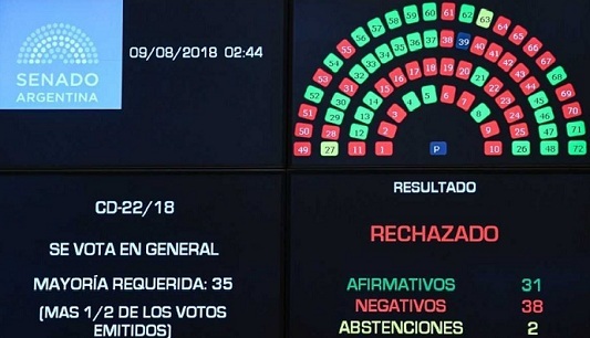 | El Senado de la Naci贸n "rechaz贸 por 38 votos a 31" la Ley de Aborto Legal | |||