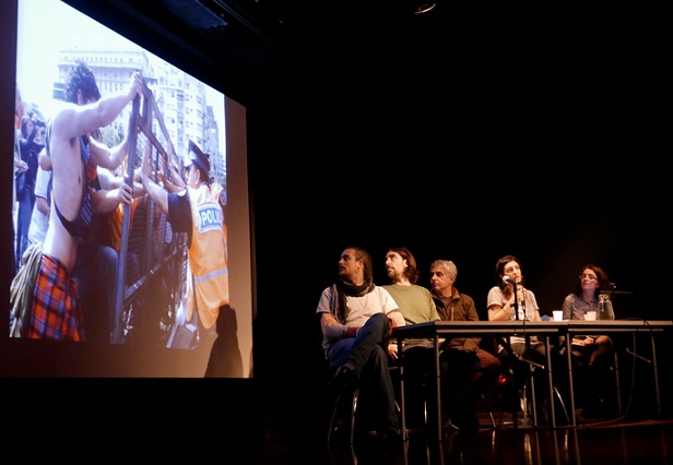 | El lunes por la tarde se llevó adelante el primer encuentro de "Fotoperiodismo y conflicto social", organizado por el departamento de Comunicación del Centro Cultural de la Cooperación (CCC) y el Area de Estudios sobre Fotografía de la carrera de Ciencias de la Comunicación de la/UBA. Contó, además, con la colaboración de ANCCOM y la Asociación de Reporteros Gráficos de la República Argentina (ARGRA). Más de cien personas llenaron la Sala Pugliese del CCC donde se realizó una charla con fotoperiodistas y otra con colectivos de fotógrafos. Yamila Ocampo, investigadora del CCC, junto a Cora Garmanik, doctora en Ciencias Sociales, fueron las presentadoras y hablaron sobre la necesidad de analizar la relación entre el fotoperiodismo y los conflictos sociales tanto en la historia como en la actualidad. También remarcaron la importancia del intercambio de experiencias entre fotoperiodistas de agencias y medios y colectivos de fotógrafos y fotógrafas. Cora Garmanik, doctora en Ciencias Sociales. Paula Ribas fue la primera expositora en tomar la palabra. La fotógrafa despedida por el vaciamiento de Télam comenzó a hablar sobre su experiencia en agencias de noticias, definió al conflicto social como la "disputa de intereses de la sociedad y el Estado" y remarcó que "la fotografía es la búsqueda de una imagen democrática". Mientras en la pantalla se observaban imágenes de marchas como la que se realizó en contra de la Ley de Reforma Previsional en diciembre del año pasado, Ribas afirmó que "en la actualidad el conflicto social está agudizado y el periodismo ha pasado a ser el blanco de la violencia". Acto seguido, sentenció: "Hay que tener una posición ética y moral frente a estos acontecimientos". El segundo en tomar el micrófono fue Pepe Mateos, el exfotoperiodista de Clarín que estuvo presente -entre otros conflictos sociales- en la masacre de Avellaneda, cuando la Policía Bonaerense asesinó a Maximiliano Kosteki y Darío Santillán. Durante su exposición proyectó obras fotográficas que le tocó hacer durante el alfonsinismo y el menemismo y, en ese sentido, afirmó que "los años interesantes son tremendos porque son años de cambios de paradigma y tienen un costo altísimo para la mayor parte de las personas". Finalmente remarcó: "La fotografía tiene que comunicar algo". Pablo Piovano fue el tercero en tomar la palabra. El autor del libro "El costo humano de los agrotóxicos" y exreportero gráfico de Página/12 abrió un debate sobre el conflicto dentro de la fotografía en "este tiempo". Afirmó que "están sucediendo cosas en el interior del país que no son narradas" y, como consecuencia, se preguntó: "¿Para qué fotografiamos?". Piovano contó lo que significó llevar adelante la investigación sobre la problemática de los agrotóxicos y, en ese sentido, manifestó que "no hay forma de contar una historia que no sea con el tiempo". A continuación, el actual presidente de la Asociación de Reporteros Gráficos de la República Argentina (ARGRA), Daniel Vides, habló acerca de la rama institucional del fotoperiodismo y señaló que "no se puede construir lo que no ocurrió, se puede tomar posición pero no se puede inventar una realidad". Luego, aseguró que "estamos atravesando una crisis salvaje que el año pasado tomó una gran dimensión y durante diciembre fuimos, claramente, objeto de la represión". Además reafirmó: "Estaba claro que había algo que no querían que mostráramos". En ese sentido, Vides reconoció que ARGRA es una gran herramienta para poder enfrentar ese atropello. Pasadas las 18:15 se abrió el debate y una de las concurrentes preguntó: "¿Cómo se pueden sacar los estereotipos y reflejar el origen del conflicto en las fotografías?". Piovano insistió en la necesidad de "tomarnos el trabajo de investigar por qué pasa lo que pasa, de ir al interior del país, pero el problema es que no tenemos forma de que nos financien. Y así, ¿cómo hacemos para mostrar a aquellos que no tienen voz?". En esa línea surgió el dilema entre registrar lo inmediato o lo profundo y fue Ribas quien remarcó que "la fotografía de la inmediatez también tiene una función social muy grande" Y afirmó: "Es tan importante lo profundo en el tiempo como la rapidez en lo inmediato". Otra de las preguntas hizo referencia a "¿cómo seguir comunicando en un contexto donde no hay trabajo?" Mientras todos asentían cabizbajos, Piovano remarcó que "lamentablemente tenemos enfrente a los grandes medios concentrados que lo único que hacen es engañarnos. Por eso ser fotógrafo en este momento es un gesto romántico". Antes de iniciar la segunda parte del encuentro, la pared del escenario desplegó un cartel con la consigna "Todos somos Télam" y, en apoyo a los 357 trabajadores y trabajadoras despedidas, el panel y el público se acercaron al escenario para tomar una foto en apoyo a la lucha y en defensa de los medios públicos y estatales. La segunda mesa inició pasadas las 19:00 y por el panel fueron desfilando, en palabras de Yamila Ocampo, "distintos colectivos de fotógrafos y fotógrafas con experiencias muy diversas". Posteo, medio de origen rosarino, fue quien abrió la charla. El expositor agradeció la invitación y explicó que pertenece a un espacio de práctica de la fotografía que realiza trabajos desde la ciudad de Rosario de corte documental. Además remarcó que trabajan con material analógico y que son irregulares, ya que no tienen una agenda determinada ni un cierre de edición porque "publicamos cuando sentimos que conseguimos abordar una problemática de manera seria, profunda, con paciencia y con empatía. Apurar una publicación para responder a una fecha estipulada de antemano es atentar contra la calidad de los trabajos que estamos haciendo y, eventualmente, faltarle el respeto a nuestros posibles lectores". Desde Posteo definieron a la fotografía como un hecho colectivo- "No tenemos tanta presencia en la web sino 