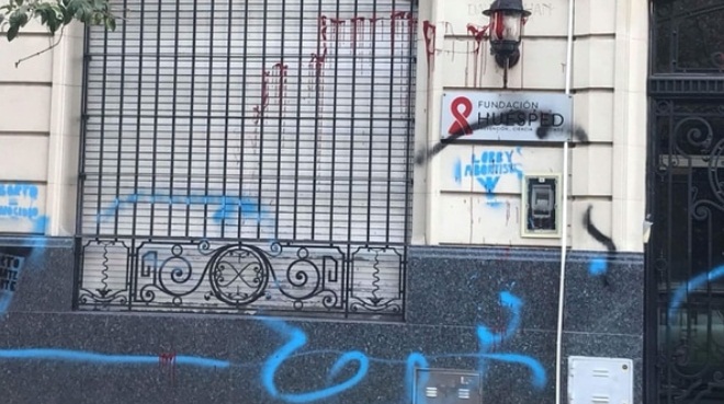 | Atacaron la sede de la Fundación Huésped con pintadas celestes y mensajes antiaborto | |||