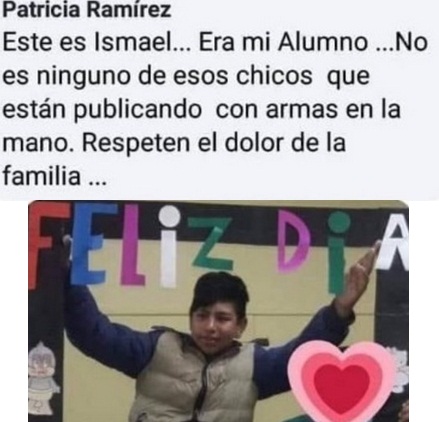 | El chico de 13 años que fue asesinado en Chaco durante un supuesto intento de saqueo fue despedido en las redes sociales por Patricia RamÃrez, su maestra. El pequeño recibió un impacto de un arma casera en la localidad de Presidencia Roque Sáenz Peña y murió en un hospital local. "Que los Ãngeles te reciban en sus brazos y brille para vos la luz que no tiene fin... Descansa en paz Ismael... ya estás con Dios", escribió la docente en Facebook. Ismael quedó en medio de los disparos cruzados entre delincuentes que intentaban robar el supermercado local Funcional Impulso y supuestos vecinos que intervinieron con armas de fuego para evitarlo. RamÃrez desmintió que el niño hubiera querido robar el comercio y negó supuestas imágenes que circulan por las redes sociales que vinculaban al chico fallecido con un delincuente de la zona. "Hoy tendrÃa que haber dado clases y que él estuviera ahÃ, como todos los dÃas. Pero no. Ahora estoy yendo a su velatorio. Esto no tendrÃa que estar pasando, porque Ismael era un niño, un niño muy querido, un niño muy bueno, un niño con sueños", dice su posteo. Desde el fin de semana circulaban por grupos de WhatsApp y por las redes sociales supuestas convocatorias para saquear comercios de la provincia de Chaco. Sáenz Peña es administrada por Gerardo Cipolini, intendente de extracción radical perteneciente a la Alianza Frente de Todos, que a nivel nacional responde a Cambiemos. Cipolini ocupa el cargo desde 2007 y el próximo año cumplirá su tercer mandato en este importante municipio chaqueño. La provincia es conducida por el ingeniero Domingo Peppo, de origen justicialista. La carta completa de la docente Mi nombre es Patricia RamÃrez. Yo soy la maestra de Ismael. Hoy tendrÃa que haber dado clases y que él estuviera ahÃ, como todos los dÃas. Pero no. Ahora estoy yendo a su velatorio. Esto no tendrÃa que estar pasando, porque Ismael era un niño, un niño muy querido, un niño muy bueno, un niño con sueños. Y encima de este dolor por su muerte, hay que aguantar que se digan un montón de mentiras. Se están diciendo muchas cosas feas. Se están publicando fotos de él que no son de él. Fotos de niños con armas. Seria bueno que se chequeé la información. Y aquellos que no saben lo que pasó, que no lo conocieron, que no estuvieron cerca de él, que se llamen a silencio. Porque quienes convivimos con Ismael y lo conocimos bien sabemos cómo era. En los comentarios en las redes también quedan en evidencia los prejuicios respecto a nuestros pueblos originarios. Algunos hasta justifican lo que le pasó justamente por ser miembro de una comunidad. Eso no se puede permitir. Esta foto que yo compartà es la foto del festejo del DÃa del Niño. Ahà pueden ver que él era un niño, como cualquier otro. Y como niño tiene derechos. Derechos que no se respetaron. El derecho a la vida. Y también otro derecho que no se está respetando: el derecho a la dignidad. Por eso por favor pedimos respeto para su familia en este momento tan difÃcil". (C) |