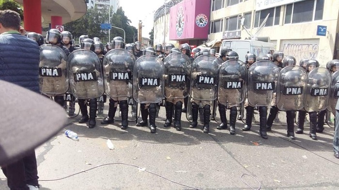 Tras horas de tensi贸n y ante la llegada de la columna del ARS la polic铆a dej贸 pasar a las organizaciones sociales en Puente Pueyrred贸n