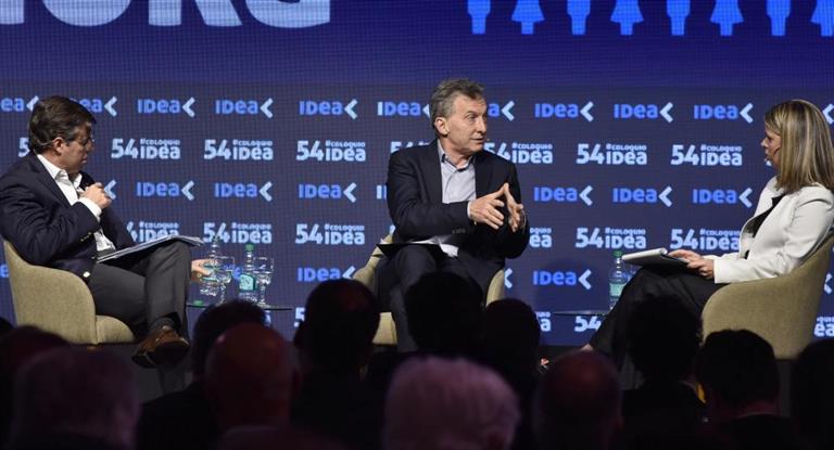 Al cerrar el Coloquio de IDEA, el presidente Mauricio Macri resaltó que "el debate sobre hasta dónde debía llegar el cambio mientras hacíamos transformaciones, transcurría con un viento a favor que nos trajo financiamiento. De golpe empezamos a percibir que eso cambiaba y por eso colocamos deuda en enero de 2018". Luego destacó que "en 2017 hubo un flujo de financiamiento de US$ 100.000 millones a los países emergentes, de los cuales tomamos U$S 30.000 millones. Este año bajó de 100.000 a sólo 7000 millones. Y la sequía nos restó otros 8000 millones". El presidente remarcó también que "cuando el dólar trepó a $ 26/27, vinieron los cuadernos y fue otro golpe muy duro. Pero, como decía mi abuela, lo que no te mata te fortalece" y siguiendo con la misma línea destacó que "antes cuando el dólar subía 100% todo el sistema colapsaba y hasta renunciaron presidentes. Pero aquí estamos, sin cambiar las reglas. En algunos medios se pronosticaban corridas bancarias y eso no pasó". En otro tramo de la entrevista realizada por el presidente de IDEA, Javier Goñi y por la presidenta del Coloquio Rosario Altgelt, Macri dijo que espera recuperar parte del dinero de las coimas por la obra pública en el marco de las causa de los cuadernos. "Esperamos que se recupere parte de ese dinero que necesitamos para escuelas, para rutas", subrayó el mandatario nacional, al referirse al tema que fue abordado durante el encuentro, luego de que empresarios admitieran haber pagado sobornos ante la Justicia. Además, destacó que las mismas empresas que aparecen en la causa de los cuadernos por pagar coimas hicieron obras durante su gestión sin "ningún tipo de cosas raras". "Los cuadernos nos llevaron de vuelta al pasado, pero esos mismos constructores, en los últimos tres años, licitaron con competencia, no hubo ningún tipo de cosas raras. Fue todo competitivo y se entregó a tiempo", subrayó el mandatario nacional, al marcar una diferencia entre su política de obra pública y la del gobierno anterior. El presidente Mauricio Macri llamó a los sindicatos a "hacer cosas inteligentes" en el país, y volvió a cuestionar la legislación laboral. "Una vez más, convoco a los gremios a que nos sentemos y hagamos cosas inteligentes para nuestra gente", apuntó y aseguró que se deben "evitar las mafias que se generan alrededor". Macri, remarcó: "No podemos tener un costo logístico que es el doble de la región, no podemos tener métodos mafiosos". "Si esto no cambia, cientos de miles de puestos de trabajo no se van a generar. No es una cuestión personal, limita nuestro futuro", indicó y afirmó: "Lo mismo con la legislación laboral". El presidente se quejó y señaló que "es un absurdo" cuando se dice que la pyme es buena y la empresa grande es mala y argumentó que "el país va a crecer cuando las decenas de miles de pymes sean grandes". Recordó además que el Gobierno logró poner en marcha la ley de ART, aunque resaltó que "no alcanza". Y aseguró que se preocupa "más que ninguno en la historia" por la creación de empleo y puntualizó: "Me obsesiono todos los días". Más adelante, el presidente dijo que "hay que bajar los impuestos", en tal sentido resaltó que "no se puede seguir sosteniendo estos niveles de tasas municipales, de impuesto al cheque o de contribuciones patronales. Hay un enorme desafío. Este Presupuesto es sano y es la base para ir adelante". Finalmente Macri dijo que se frustra mucho cuando "veo dirigentes que siguen diciendo cosas, aunque entienden y saben que lo que están diciendo es una mentira. Eso me pone muy mal". Y terminó diciendo que "esta vez vamos a cambiar la historia definitivamente". |