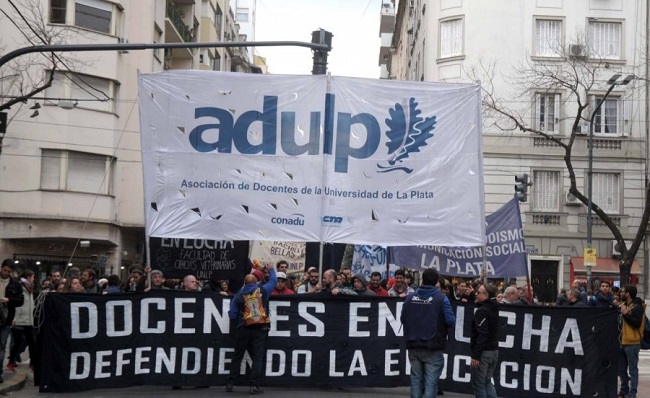 La Asociaci贸n de Docentes de la UNLP particip贸 el pasado mi茅rcoles del Plenario de Secretarixs Generales de CONADU, en el que se defini贸 por unanimidad continuar las acciones contra el presupuesto de ajuste y en defensa del poder adquisitivo de los trabajadores. El plan de lucha resuelto incluye un paro nacional con movilizaciones, asambleas, abrazos y otras modalidades de protesta, el pr贸ximo viernes 16 de noviembre. La preocupaci贸n respecto de la relaci贸n entre precios y salario fue el principal tema abordado durante el encuentro en la Capital Federal. En esta l铆nea, CONADU y todas las organizaciones de base que la conforman le est谩n reclamando al Ministerio de Educaci贸n el urgente adelantamiento de la cl谩usula de revisi贸n, incluida en el acuerdo 2018, frente a la escalada inflacionaria de los 煤ltimos meses. "A pesar de que la paritaria de los docentes universitarios fue una de las m谩s altas (26% de marzo a octubre logrado con siete meses de lucha), la crisis autoinfligida de la gesti贸n Cambiemos vuelve a poner en riesgo el poder adquisitivo de los trabajadores, y los gremios ya anticipan que si el Ministerio no da respuestas el plan de lucha se profundizar谩", dijeron desde la organizaci贸n gremial. Los y las docentes de la universidad p煤blica acordaron tambi茅n realizar una jornada en repudio al presupuesto del Gobierno Nacional, el mi茅rcoles 14 de noviembre, con actividades de difusi贸n sobre el ajuste en las Universidades. Adem谩s, el 21 de noviembre se llevar谩 a cabo el "Foro Universitario del Encuentro Latinoamericano contra el Neoliberalismo, por una universidad democr谩tica y popular", con movilizaci贸n en el marco del Primer Foro Mundial del Pensamiento Cr铆tico. A futuro, el 22 de noviembre habr谩 un nuevo Plenario de Secretarios y Secretarias Generales en CONADU, para evaluar los alcances de las medidas de fuerza y definir los pasos a seguir.