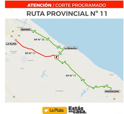 En el marco de la obra de la Ruta Provincial N° 11 entre La Plata y Magdalena, que contempla su repavimentación, el ensanche de la calzada y el reemplazo de los puentes sobre los arroyos que la atraviesan; se informa que hasta mañana se desviará el tránsito por trabajos en el puente sobre el arroyo El Pescado.