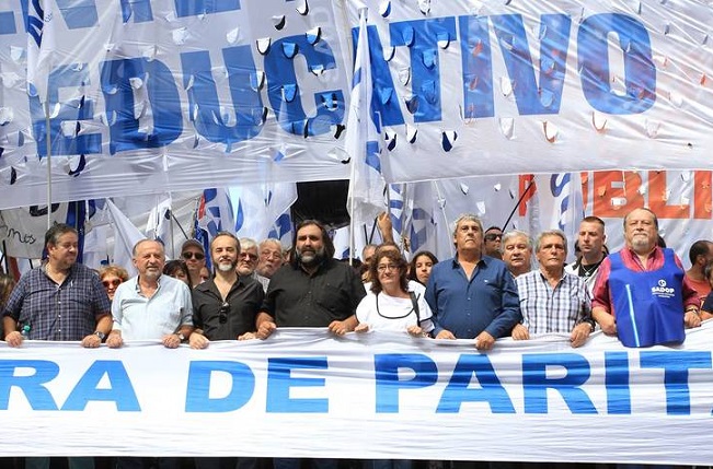 Por su parte la presidenta de la Federaci贸n de Educadores Bonaerenses (FEB), Mirta Petrocini, tambi茅n apunt贸 contra la representante de la provincia y advirti贸:  "en abril la gobernadora  aseguro que los docentes no iban a perder contra la inflaci贸n. Hoy tras ocho meses de conflicto los docentes tenemos una p茅rdida salarial mayor al 15%".