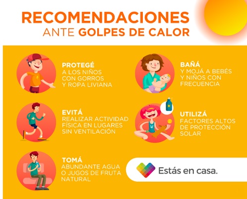 Al respecto, el Secretario de Salud local, Germ谩n Niedfeld, recomend贸 "prestar mucha atenci贸n a la hidrataci贸n, utilizar ropas frescas y claras, y en especial mantener cuidados con adultos mayores, ni帽os y personas con enfermedades cr贸nicas".