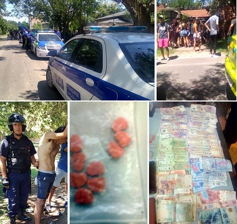 En ese marco, se detuvo a un joven de 20 a帽os con un envoltorio con 9 pastillas MDMA (metilendioximetanfetamina), conocida como 茅xtasis; un recipiente con metanfetamina, conocido como Cristal, todo presuntamente para su comercializaci贸n; y 15.000 pesos en billetes de diferente denominaci贸n.