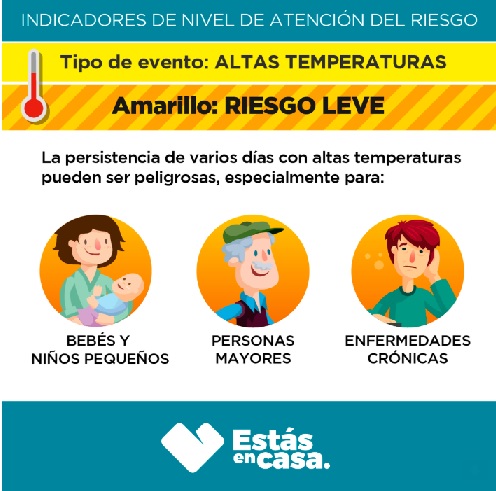 Según datos aportados por la Dirección de HidrometeorologÃa de la Comuna, se pronostican temperaturas elevadas para los próximos dÃas. Ante ello, se recomienda a los vecinos tomar mucha agua durante el dÃa; consumir alimentos frescos como frutas y verduras; y evitar las bebidas alcohólicas muy dulces y las infusiones calientes, entre otras medidas; en tanto que se insta a los vecinos a una especial atención en adultos mayores, niños y personas con enfermedades crónicas.