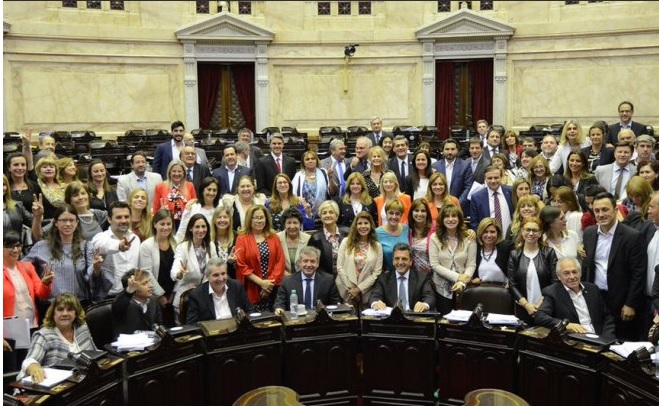 En el DÃa Internacional de la Mujer, el Gobierno nacional reglamentó la Ley 27.412 de Paridad de Género en ámbitos de representación polÃtica, que fue sancionada por el Congreso en noviembre de 2017. La norma establece el 50% de cupo femenino en las listas de candidatos a diputados y senadores nacionales y parlamentarios del Mercosur. De esta manera, en este año electoral todos los partidos polÃticos están obligados a que en sus nóminas figuren de manera intercalada un candidato de cada sexo. Asimismo, la ley habilita la posibilidad de impugnar listas que no cumplan con la normativa. También se incorpora la igualdad de género a nivel partidario, aunque en este caso no será obligatorio intercalar postulantes, pero sà las listas deberán completarse con un 50% de representantes de cada sexo. Además, el incumplimiento de esta ley pasa a ser una de las causas de caducidad de la personalidad polÃtica de los partidos. El proyecto fue sancionado por Diputados con 168 votos a favor, 4 en contra y una abstención. La iniciativa habÃa sido aprobada en octubre de 2016 por el Senado. La incorporación del proyecto al temario de la sesión en Diputados fue sorpresiva. Cerca de las 2 de la madrugada del 23 de noviembre de 2017, diputadas oficialistas y opositoras lograron que se vote el apartamiento del reglamento y se alzaron con la aprobación histórica. (Parlamentario) |