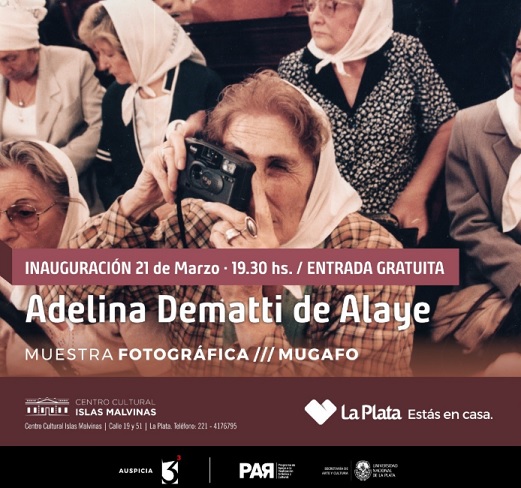 En el marco de las distintas propuestas que se llevan adelante por el mes de la mujer, la Municipalidad de La Plata presentar谩 ma帽ana a las 19.30 horas en el Centro Culturas Islas Malvinas, una muestra que revaloriza el trabajo de documentaci贸n de la recordada Madre de Plaza de Mayo, Adelina Dematti de Alaye.