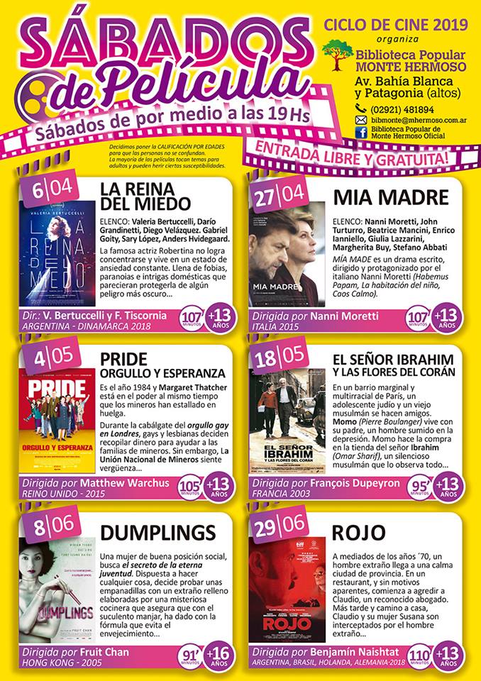 | Monte Hermoso: Comienzan los sábados de pelÃcula de la Biblioteca Popular | |||