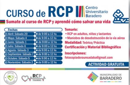 La Municipalidad de Baradero a través de RCP Training y el Proyecto Salva Corazones desarrollará cursos de RCP para aprender cómo salvar una vida. La modalidad es teórica y práctica y el curso es totalmente gratuito. La jornada empezó el sábado 20 de abril.