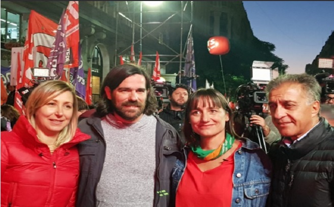 Finalizada la movilización de los gremios a Plaza de Mayo en el marco del paro que se desarrolló durante este martes, el Frente de Izquierda realizó un multitudinario acto en conmemoración del Día del Trabajador, junto a la militancia y distintas delegaciones de trabajadores. El cierre del acto estuvo a cargo del precandidato a presidente por esa fuerza, el diputado Nicolás del Caño, quien junto a Myriam Bregman, Romina del Plá y Néstor Pitrola, entre otros referentes del FIT, llamó a organizarse y levantar "un programa para que la crisis la paguen los especuladores, los banqueros, las privatizadas y las petroleras, y no el pueblo trabajador". En su discurso de cierre, Del Caño comenzó repudiando el "intento golpista" en Venezuela. "Si triunfan los golpistas de la mano de (Donald) Trump, se profundizarán las penurias del pueblo venezolano, y el imperialismo yanqui avanzará aún más en su ofensiva sobre América Latina", denunció. Luego señaló que en nuestro país "estamos viviendo la crónica de una catástrofe anunciada. ¿Quién podría esperar otro desenlace de la sumisión al FMI del gobierno de Cambiemos? Además, todo el peronismo, incluido el kirchnerismo, nos dice que hay una salida de la crisis sin romper con la sumisión al FMI. No es cierto: seguir pagándole al Fondo Monetario es seguir con el ajuste. Para todos ellos la ley es que primero hay que pagar y después hay que arreglarse con lo poco que queda. Nosotros planteamos que la única salida es romper con el Fondo: son ellos o nosotros". Y agregó: "Para cambiar el rumbo necesitamos que la bronca que vemos todos los días se transforme en millones de trabajadores y trabajadoras en las calles, con un plan de lucha que empiece por un verdadero paro general activo de 36 horas hasta llegar a la huelga general política que permita derrotar al FMI, (Mauricio) Macri y los gobernadores". "Para evitar esa perspectiva y ante la aguda crisis en la que se encuentra el Gobierno, ya están preparando salidas a espaldas del pueblo, pactos entre los partidos tradicionales, las cúpulas empresarias, la Iglesia y la burocracia sindical, como el que propuso (Sergio) Massa. Contra esos pactos y contra el régimen del FMI, planteamos la lucha por una Asamblea Constituyente libre y soberana, donde se puedan discutir y resolver sobre todos los problemas que afectan al país. Frente a las conspiraciones contra el pueblo, desde el Frente de Izquierda planteamos una verdadera salida democrática de emergencia", finalizó Del Caño. Por su parte, Del Plá planteó: "Hacemos este acto en medio de una jornada de paro, que fue importante por la bronca del pueblo y no por las direcciones sindicales que vienen a abonar la orientación hacia el recambio electoral con Cristina Kirchner y el PJ y no a desenvolver un plan de lucha". Según la diputada del Partido Obrero, "la corrida bancaria condiciona al oficialismo pero también a la oposición, y establece los términos de la transición en marcha: honrar el pago de la deuda, a lo que se comprometieron todos los ´opositores´ en Nueva York. Lo que está en discusión es quién paga la crisis". Del Plá sostuvo que "el Frente de Izquierda es la única fuerza cuya campaña está al servicio de la lucha por derrotar el ajuste de Macri, los gobernadores y el FMI; y que tiene un programa para que la crisis sea pagada por el capital y no por los trabajadores". En el acto también hicieron uso de la palabra dirigentes del sindicalismo combativo, junto a los principales referentes del Frente de Izquierda. (parlamentario) |