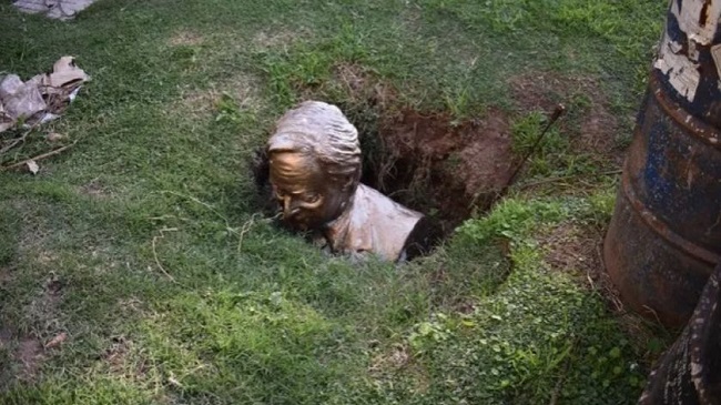 | INDIGNACI脫N!!! Vandalizaron un busto de N茅stor Kirchner en Roque P茅rez | |||