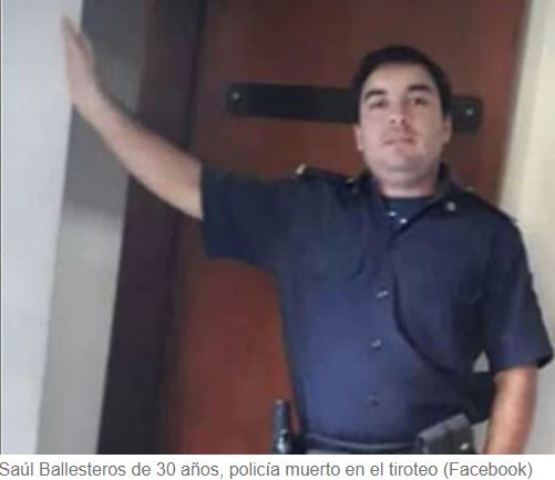 El hecho ocurri贸 cerca de las 5 de la madrugada del jueves en la calle Guido Spano entre San Lorenzo y Fort铆n Chiquito, del barrio Sagrado Coraz贸n, una zona de muy poca iluminaci贸n de esa ciudad del noroeste de la provincia de Buenos Aires. Ante un llamado de emergencia desde una vivienda que el mi茅rcoles hab铆a sido allanado en una causa por violencia de g茅nero, acudieron al lugar por lo menos cinco efectivos distribuidos en una patrulla y dos motos. Seg煤n lo investigado, el m贸vil y las motocicletas se desplazaron por distintos sectores y por alguna raz贸n hubo un fuego cruzado entre ellos, ya que aparentemente no se reconocieron como integrantes de la fuerza. Sobre lo sucedido Oscar Carrizo, subsecretario de Prevenci贸n Ciudadana de Lincoln, dijo que "los polic铆as fueron convocados a una vivienda tras un llamado al servicio de emergencia por la presencia de un pr贸fugo que ten铆a pedido de captura dispuesto por personal del Juzgado de Garant铆as de Jun铆n por un caso de violencia de g茅nero". Seg煤n el funcionario municipal, a unas dos cuadras antes de llegar una de las motos dobl贸 para rodear al inmueble y los otros m贸viles continuaron derecho y que "dado que en esa zona hab铆a poca iluminaci贸n, los polic铆as se encontraron de frente a menos de ochenta metros entre s铆 y mutuamente dieron la voz de alto pero al parecer desconfiaron hasta que uno de ellos efectu贸 un disparo que origin贸 el tiroteo entre los grupos", relat贸 el subsecretario y a帽adi贸: "El hombre buscado ya no estaba, evidentemente los efectivos no se reconocieron y el desenlace fue esta tragedia". Como consecuencia del enfrentamiento, el subteniente Sa煤l Ballesteros de 30 a帽os recibi贸 un tiro a la altura del coraz贸n y muri贸 cuando era trasladado al hospital local. El otro polic铆a, identificado como el subinspector Juan Manuel P茅rez de 38 a帽os, result贸 herido de tres impactos, uno en un brazo, otro en una pierna y el restante en un hombro y sin que su vida corriera peligro, "se encuentra internado en el hospital de Lincoln aunque podr铆a ser trasladado a Jun铆n en las pr贸ximas horas", asegur贸 Carrizo. Por el hecho, el fiscal Sergio Terr贸n, a cargo de la Unidad Funcional de Instrucci贸n 5 de Jun铆n acudi贸 al lugar y dispuso las primeras medidas para determinar lo sucedido y secuestr贸 de las armas de los polic铆as. Adem谩s, el funcionario orden贸 que se haga la autopsia en la morgue judicial para determinar las causas de la muerte de Ballesteros, quien al momento del enfrentamiento no llevaba chaleco antibalas. La investigaci贸n qued贸 centrada en una presunta negligencia de los efectivos al no cumplir con los protocolos de seguridad previstos para estos procedimientos. En la escena del homicidio trabaj贸 personal de Polic铆a Cient铆fica, de la Ayudant铆a Fiscal de Lincoln que, adem谩s, recibi贸 apoyo de Defensa Civil y de bomberos. A ra铆z del fallecimiento del polic铆a, la Municipalidad de Lincoln decret贸 un d铆a de duelo, la suspensi贸n de actos oficiales y la colocaci贸n de las banderas patria, bonaerense y distrital a media asta en se帽al de acompa帽amiento a la familia de Ballesteros. |