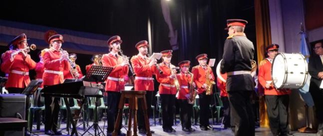 En el marco de las actividades por el 209º aniversario de la Revolución de Mayo y celebrando sus 82 años de trayectoria, la Banda Rerum Novarum brindó el sábado un concierto en el Teatro Municipal Trinidad Guevara. Asistió el intendente Municipal Dr. Oscar Luciani y la secretaria de Gobierno Rita Sallaberry, entre otros funcionarios municipales. "Al son de los buenos días" se llamó al concierto, tomando el título de un artículo periodístico que escribió Lili Ricciardulli para el Semanario Presente. Dividida la presentación en dos tramos, hubo tangos, paso doble, música de películas y clásicos de la banda como La Cumparsita o la Marcha de Malvinas en homenaje a los ex combatientes. A sala llena y con la locución de Juan Meri, la Rerum Novarum reconoció a algunos músicos. También estuvo Claudio Tuis, quien sumó historias y anécdotas. Hubo músicos invitados: Brenda Costa y Carlos González. |
